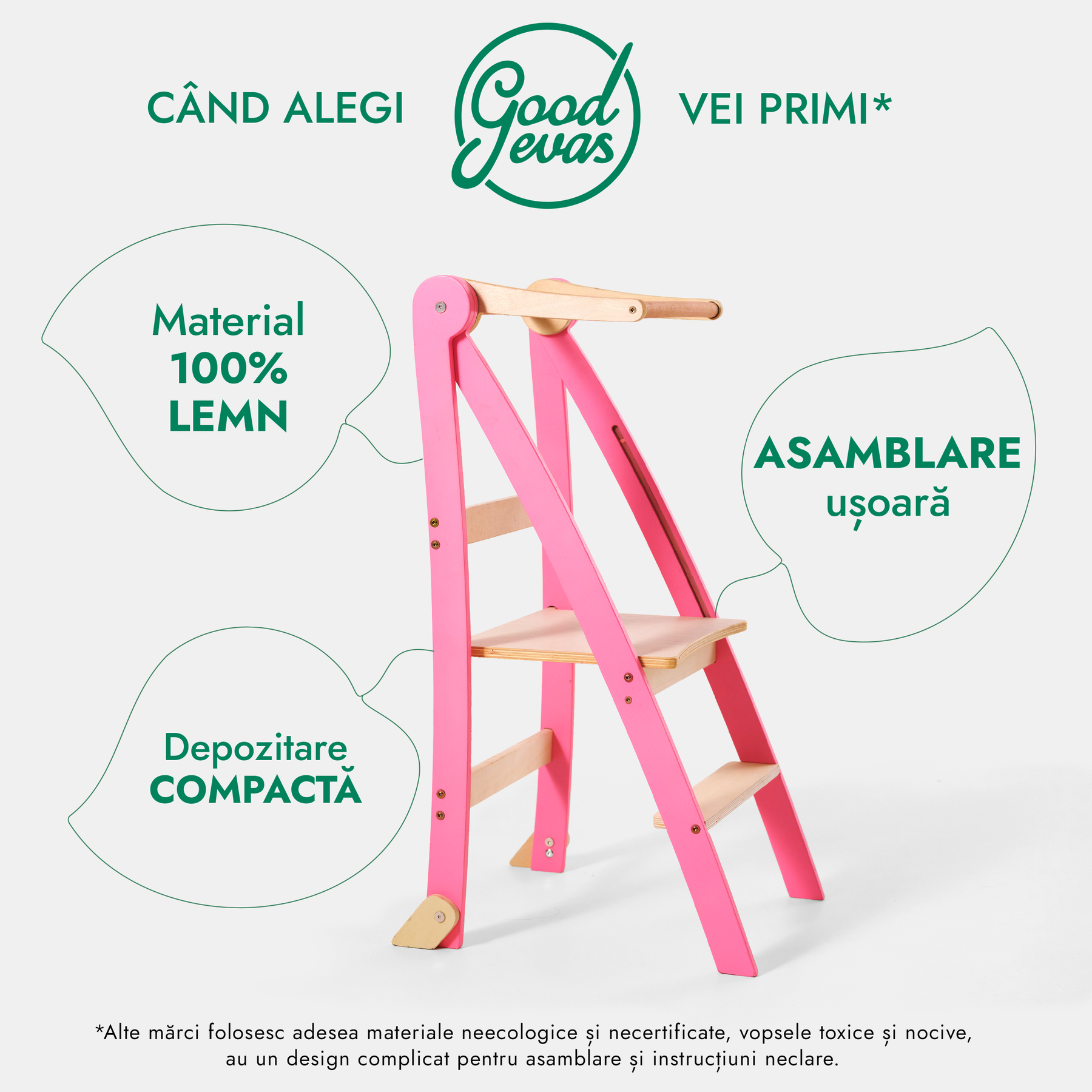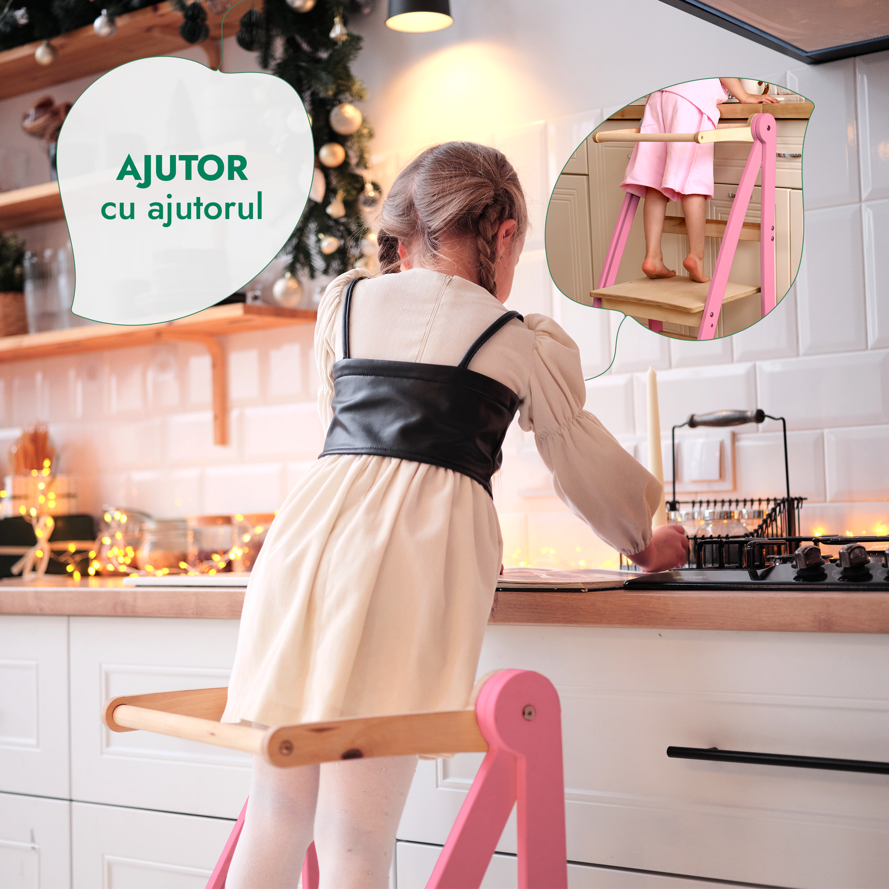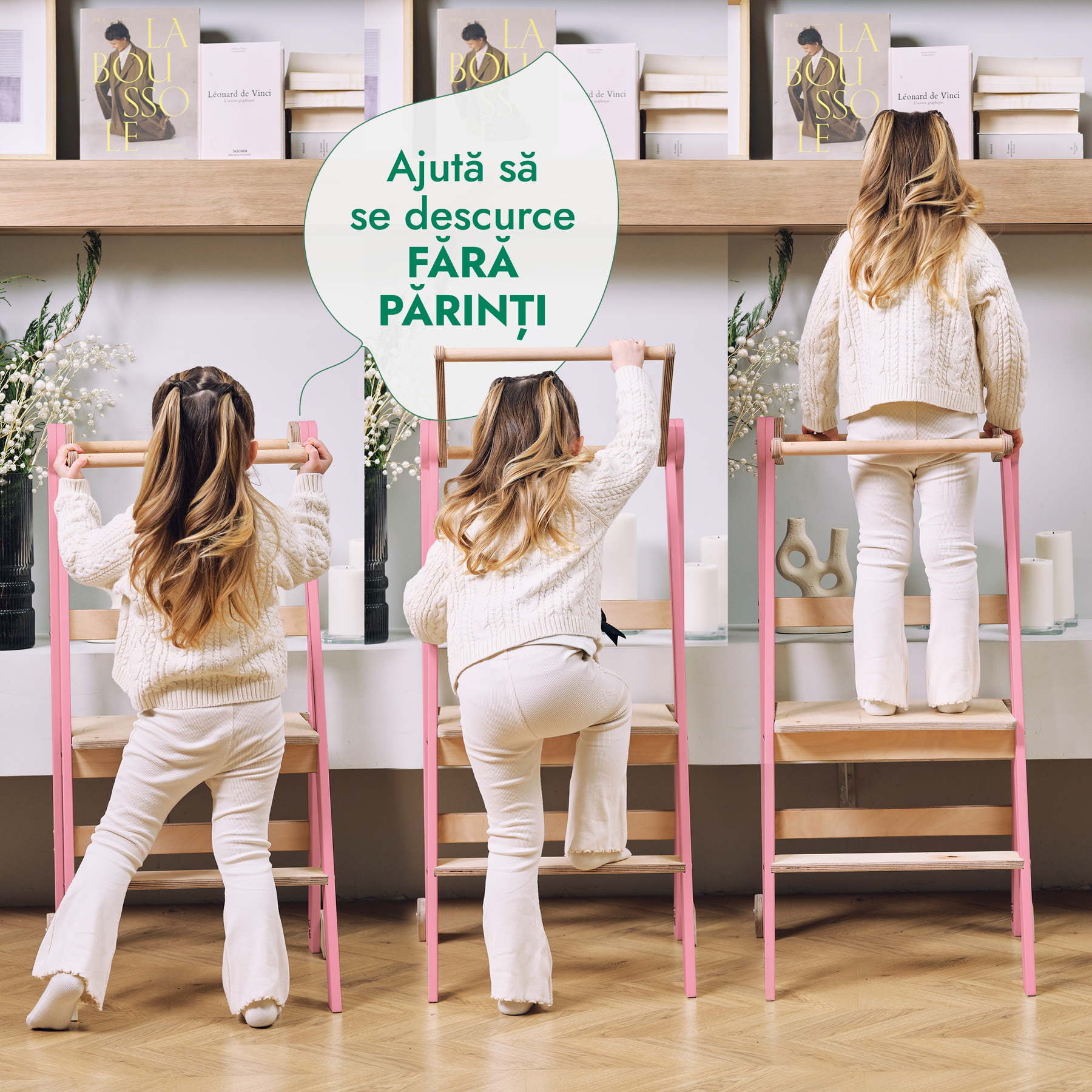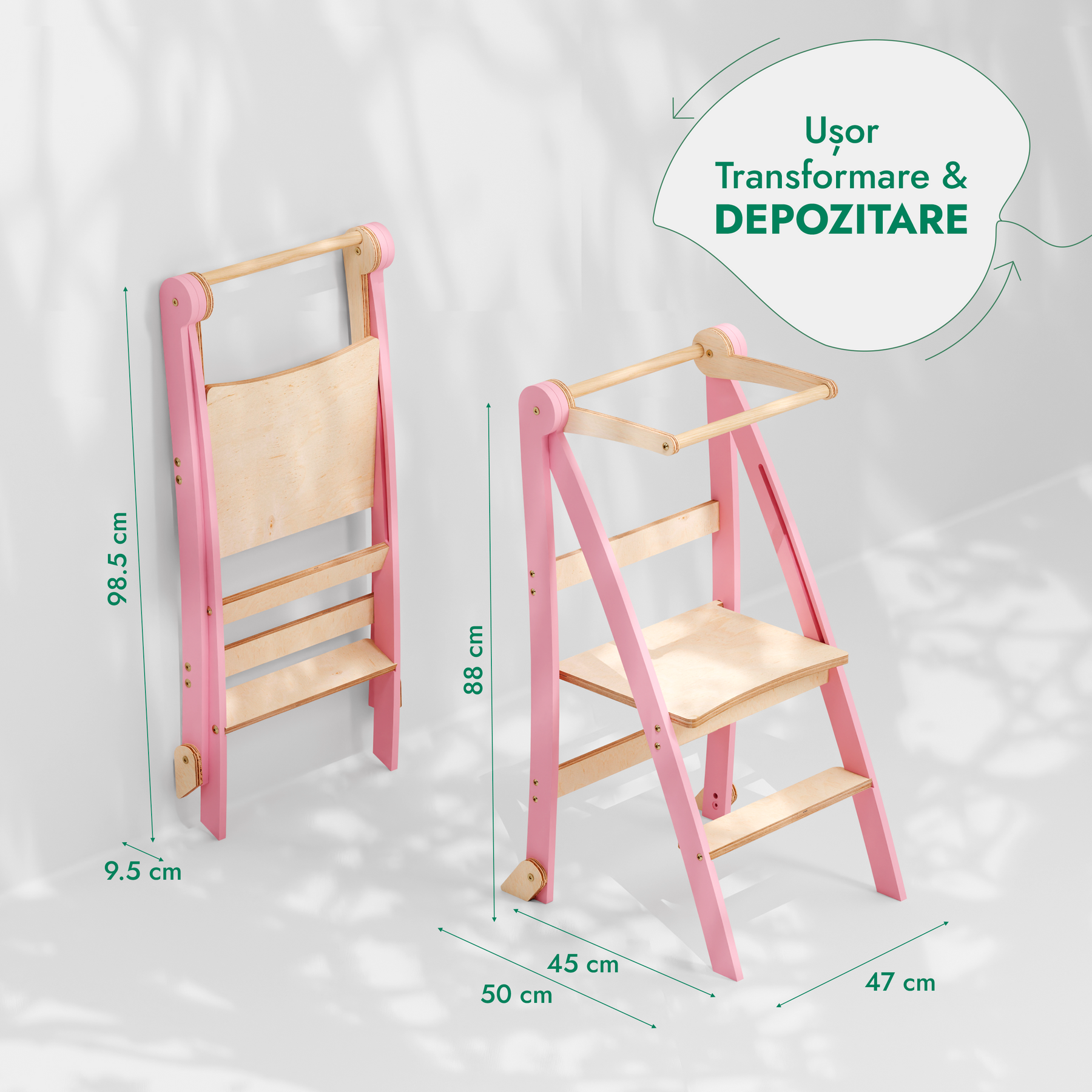 Turn de învățare: Scaun cu treaptă pliabilă pentru copii mici – Roz
